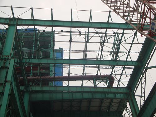 915上午,伴着喜庆的爆竹声响,湘钢炼钢工程厂房钢结构加料跨最后一吊就位,至此,由机电公司承担的湘钢炼钢工程厂房钢结构钢水接受跨、精炼跨、转炉跨、加料跨等,已全部实现封顶目标。