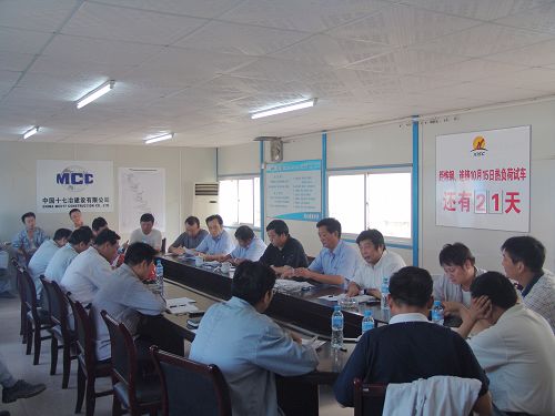 项目经理史朝华对湘钢炼钢工程最后冲刺阶段工作任务进行了部署。王青山助理下达了《关于确保10.15热负荷试车第011号》指令书,对各单位目前的任务作进一步细化,责任进一步明确。