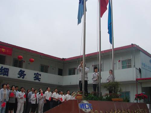 伴随着雄伟的国歌声响起,五星红旗、中冶集团司旗、十七冶司旗一同冉冉升起,激动的心情与飘扬的红旗融合在一起,大家共同见证了祖国母亲六十周岁这一伟大的历史时刻。