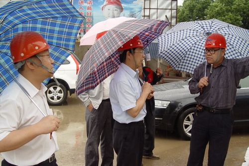 68下午,中冶集团安全检查余伟德处长一行,在十七冶集团公司副总经理唐灶荣、安保部长张杰的陪同下,冒着大雨对城建公司芜湖项目部中兴花园、海螺大厦工地进行了安全、质量、文明施工大检查。
