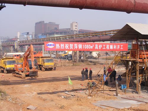 115上午928,在绚丽的礼花和爆竹声中,萍钢集团安源钢铁公司1080m3高炉工程顺利开工。