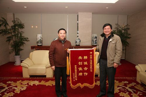 蒋筱春副总经理向十七冶赠送了锦旗和感谢信,王建国总经理愉快地接受了锦旗和感谢信蒋筱春说,我们是专程来感谢十七冶的,十七冶在这高线厂技改工程中,特别能战斗,干得非常出色,我们表示衷心的感谢,特赠送锦旗和感谢信,表示我们的敬意。
