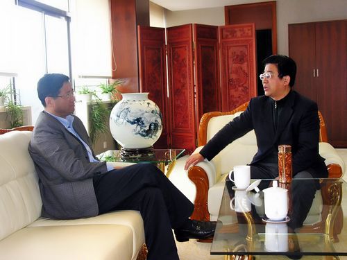 419上午,中国十七冶集团有限公司董事长、党委书记康承业在办公室与应邀来访的中共马鞍山市委书记、市人大常委会主任郑为文亲切会谈,会谈充满着朋友般的热情、诚挚和友谊的气氛。