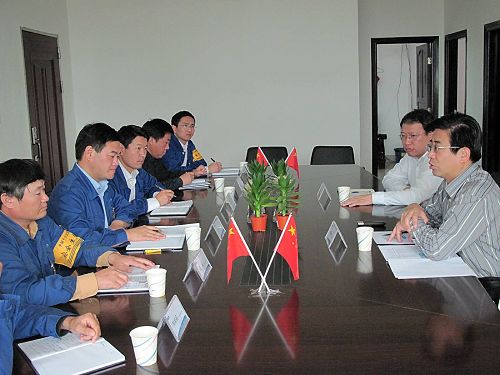 随后在项目部四楼会议室,康董事长与项目部领导班子成员了进行了亲切的交流,项目经理正清就项目部先后进行的房屋拆迁、场地平整四标工程和西南排洪沟工程各项工作的进展情况以及下一阶段的工作计划进行了详细的汇报。康董事长听后十分满意,他说:“来到湛江项目部后,看到广大员工精神面貌很好,现场文明施工、安全管理都十分到位,我很欣慰。”