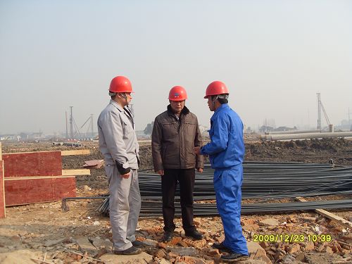 1223,公司副总经理喻世功来到常熟龙腾特钢项目经理部,在项目经理周金龙的陪同下,深入施工现场仔细询问工程的进展情况,指导工作。