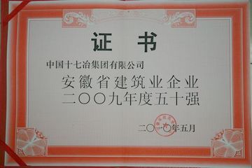 日前,由安徽省建筑行业协会组织,经有关专家对省内各建筑企业营业收入、利润、纳税情况、施工力量、施工业绩等方面指标进行评审后,省建筑业协会授予中国十七冶集团 “安徽省2009年度建筑业50强”称号,并颁发了荣誉证书和奖牌。