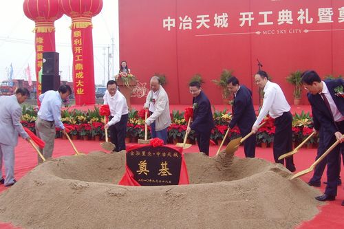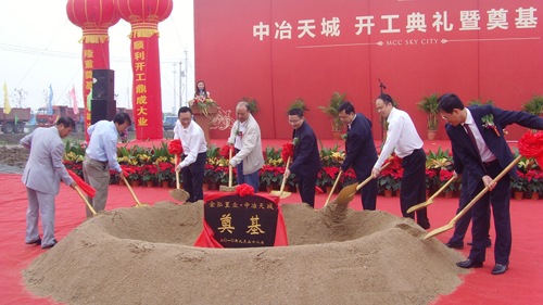 王建国总经理和南京江宁区政府有关部门领导,银行、合作单位领导共同为“中冶天城”项目开工奠基。