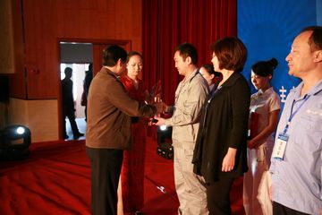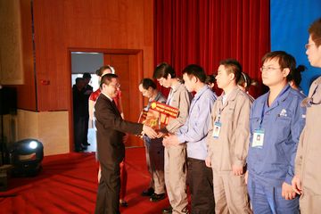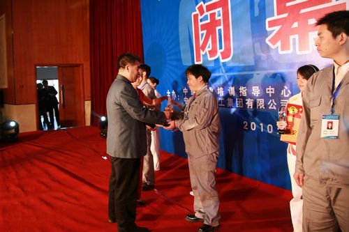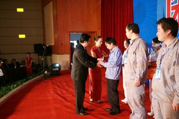 人力资源和社会保障部中国就业培训技术指导中心处长牟军作《关于对中国冶金科工集团公司第三届职业技能竞赛获奖人员授予“全国技术能手”荣誉称号的情况说明》。牟军说,按照人力资源和社会保障部文件精神,决定对获得决赛前三名的选手吕冬杰、王晓彬、陈鹏授予“全国技术能手”荣誉称号。