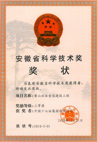 获得安徽省科学技术奖三等奖的项目成果是《黄山云谷索道建设工程》,由冶金工程技术公司研发;获得2011年度全国冶金建设行业优秀QC成果二等奖的有《凌云大桥喷铝质量控制》、《开展QC活动,控制沉井下沉偏差》、《采用公差理论控制沥青路面施工厚度》、《提高减定径机组润滑管道冲洗质量》和《提高梅钢二期公辅工程砼建(构)筑物的观感质量》等5QC成果。
