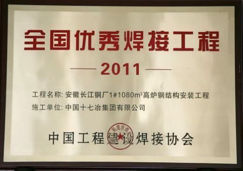 日前,中国工程建设焊接协会2011年度“全国优秀焊接工程”评审结束,中国十七冶集团施工的内蒙古星光煤炭集团特钢工程、福州港罗源湾港区将军帽作业区一期工程钢管桩项目和安徽长江钢厂1#1080m3高炉钢结构安装工程等三项工程荣获“全国优秀焊接工程”奖。