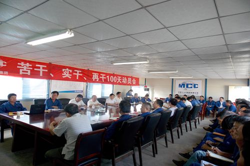 1028上午,广东十七冶建设有限公司在湛江炼钢项目现场工地开展了第二次推进再动员,提出了开展“苦干、实干、再战100天”劳动竞赛活动。中国十七冶集团总经理刘安义、总经理助理王青山、钟华彪,项目监管部副部长史朝华、各参建二级公司负责人及项目部部门以上负责人参加了会议。