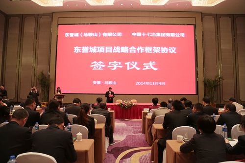 114,中国十七冶集团与东誉城(马鞍山)有限公司在马鞍山签订东誉城项目战略合作框架协议。深圳华南城集团执行董事兼总裁梁满林,中国十七冶集团董事长、党委书记喻世功分别在签约仪式上致辞。马鞍山市副市长王晓焱、市政协原副主席梁成、市政府副秘书长周正忍、当涂县副县长易茂林等市、县领导,项目合作银行领导及相关公司、商会负责人、中冶置业(安徽)公司领导和有关人员参加了签约仪式。