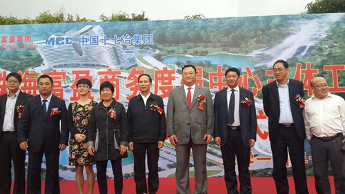 富盈集团董事长刘学斌代表富盈集团致辞,他对十七冶的前期准备工作给予充分肯定,对与公司携手合作充满信心,对项目早日竣工充满期待。随后他宣布主体工程启动。在欢快的礼花爆竹声中,珠海富盈商务度假中心工程正式启动。