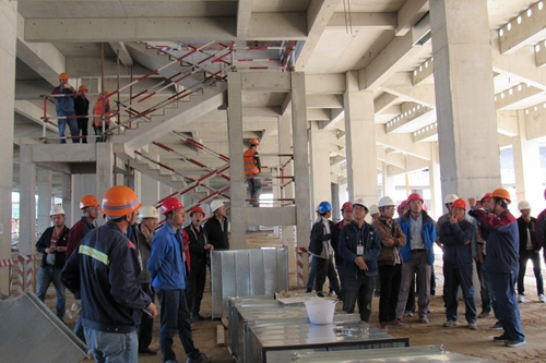 930日,由兰州城投公司金杰贵主任组织的科教园区各项目工程技术部业主代表、质量安全管理部、三校一区各标段、现代职业学院各监理,施工单位项目经理、技术负责、总监、总监代表到十七冶甘肃分公司承建的甘肃省体育馆项目施工现场观摩。