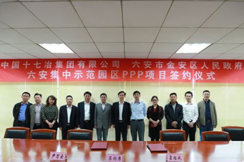 930上午,中国十七冶集团与六安市金安区政府签署PPP项目合作协议。中国十七冶集团总工程师、副总经理尹万云与金安区委副书记、区长霍绍斌代表合作双方在协议上签字。金安区委常委、副区长郑武军,区政府办主任江仲贤、发改委主任方明等相关领导出席了签约仪式。