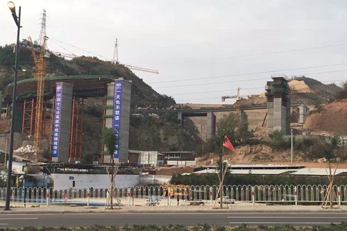 此时的施工现场,正彩旗飘飘,车轮滚滚,项目部克服了前期现场地形条件复杂、桥梁施工难度大等一系列困难,积极推进项目建设,掀起了一次又一次大干热潮。