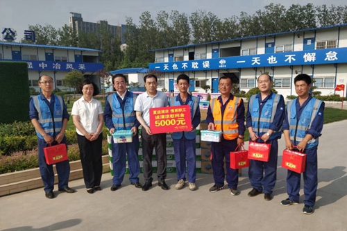“情系职工,夏送清凉”,24日下午,蔡进书记还前往郑州地区项目部开展了送清凉慰问活动。