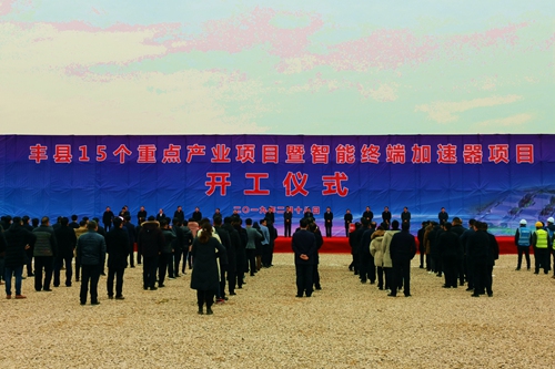 2月18日上午,中国十七冶集团有限公司房屋工程技术分公司承建的徐州市丰县智能终端产业园项目开工。徐州市副市长毕于瑞,丰县县委书记王克华,县委副书记、县长娄海;公司副总经理伍昌国,房屋工程技术分公司经理丁云霄等参加了开工仪式。