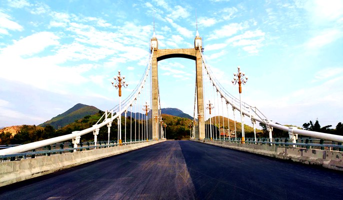 “五桥二路”项目罗甸县委、县政府的重大民生实事工程之一其中罗甸1号桥为独塔不对称自锚式悬索桥,跨度组合为102+71,桥梁总长180米3号桥为实腹式圆弧拱风雨桥,全桥长128.4米,桥面宽度16.5米,与规划20号路相接4号桥为空腹上承式板拱桥,桥跨布置为3×45,桥梁总长155.43米5号桥为1-90上承式混凝土箱型拱桥,桥梁总长205.66米六号桥为48+88+48预应力混凝土连续钢构桥,桥梁总长197米16号路全长321.4米,采用单幅路形式,路基宽度24米17号路全长870米,采用单幅路形式,路基宽度16.5米。项目建成将改善城东新区交通条件,加快马草寨岛内开发的步伐,带动罗甸县经济快速发展