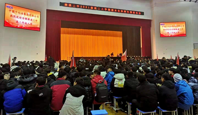 1月17日上午,中国十七冶集团有限公司市政工程技术分公司承建的安徽濉溪二中新校区项目艺体馆顺利承接了高二年级家长会,正式投入使用。