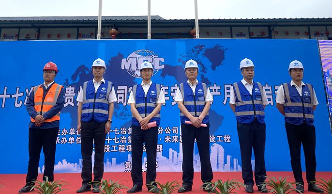 为切实“消除事故隐患,筑牢安全防线”,提升公司安全生产意识水平,6月1日上午,十七冶贵州分公司在遵义广厦·未来城项目举行2020年“安全生产月”启动仪式。中国十七冶集团副总经理、安全总监伍昌国,公司副总经济师、城建分公司经理杨有谊,贵州分公司经理朱广剑、党委书记余志忠、副经理王争春以及贵州区域、成都区域项目经理,参建协作单位人员代表近200人参加了启动仪式。