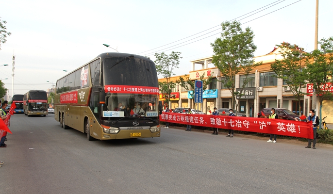 寒夜冒雨踏征程,满载星光凯歌还。4月20日晚,首批返程人员乘车返马,顺利抵达健康驿站。4月21日夜间、4月22日凌晨,公司领导和部分员工早早地守候在道路两旁,翘首以盼,迎接陆续归来的援建英雄。“圆满完成方舱援建任务,致敬十七冶守沪英雄!”“驰援上海方舱,英雄不辱使命,满载荣誉归来!”等一条条鲜艳的横幅持在手中,寄予着公司上下对全体援建勇士的崇高敬意和深切牵挂。