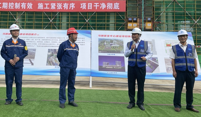 马钢研发中心建设工程项目位于马鞍山市雨山区九华西路8号马钢指挥中心基地范围内,结构形式为钢框架结构,局部采用组合构建,工程总建筑面积约42664平方米,其中地下室建筑面积约13967平方米,地下一层,建设内容包括研发主楼、实验中心、地下车库及绿化景观等配套设施。此次封顶的主楼为型钢混凝土框架结构,地下1层,地上10层,高度44.17米,总建筑面积约1万平方米。