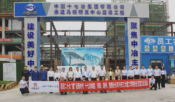 立足建团百年新起点、喜迎党的二十大胜利召开之际,为贯彻学习习近平总书记论党的青年工作重要论述,持续深化校企合作,形成校企双方优势互补,9月28日,中国十七冶集团城建、市政、路桥、管廊分公司与安徽工业大学建筑工程学院联合开展校企交流互访活动。安工大建工学院党委书记赵龙、院长于峰,十七冶工会主席、党委组织部部长魏致家,城建分公司党委书记余华春,十七冶党群工作部副部长李静、团委书记夏仕勇等出席活动。