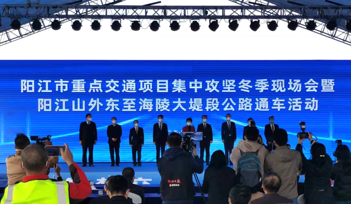 通车仪式上,余金富市长代表市委、市政府,对山外东至海陵大堤段公路工程的顺利通车表示祝贺,向项目团队积极克服疫情反复、恶劣天气等不利因素按期完成通车目标致以衷心感谢。他指出,本工程是民生工程,更是发展工程,道路通车后,将进一步完善市政基础设施和公共服务设施配套建设,对阳江市融入珠三角、连接大西南的交通网络建设,提升交通区域优势、构筑立体交通网络产生积极的推动作用。