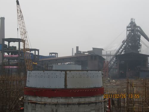九钢1080m3高炉第一带炉壳吊装顺利就位