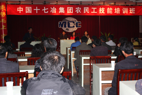 1110晚,十七冶农民工技能培训班开班仪式在路桥公司三楼会议室举行,市总工会副主席毛善群到场作了重要讲话。她希望广大农民工要高度重视此次培训,在工作之余要善于利用培训资源,认真学习相关技能,早日成为复合型人才,顺利走上致富之路。本次培训有来自中冶置业(安徽)公司动迁房项目的50多名农民工参加。仪式由十七冶集团公司工会副主席韩伟群主持。