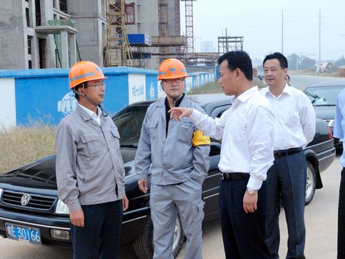 929上午,当涂县委常委、常务副县长易茂林,当涂县住建委主任王宝春等一行视察了五星佳苑安置房项目工地。十七冶当涂县安置房项目经理徐兆平、副经理李春怀陪同视察。