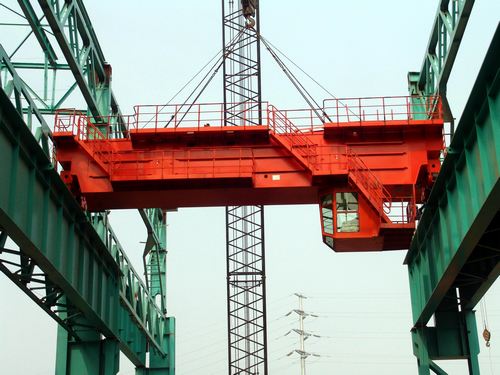 该行车自重14714Kg,跨度18,起重量150t/50t-16m。上午11:58分,在吊车的提升下缓缓转身,准确就位在14行车梁上,行车首吊取得圆满成功,顿时鞭炮齐鸣,现场为之欢腾。该项目部计划,将在4月底前完成全部34150t/50t-16m桥式起重机的安装任务。