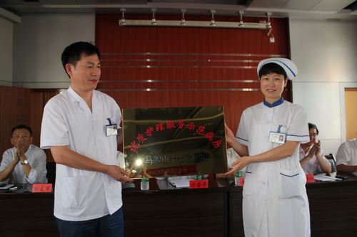 医院董事长施松林、院长王仲恺就开展“优质护理服务示范病房”活动分别作了讲话,强调深入开展“优质护理服务示范病房”活动,是医院今年的一项重要任务,全体医护人员要积极投入到这项活动中,转变服务理念,提高服务意识,改革护理工作模式,努力使护理做到“贴近病人、贴近临床、贴近社会”,满足不同患者多元化、个性化需求,提供多层次、多方位的护理服务,为推进医院稳健发展做出贡献。院领导还为两个试点病房颁发了“优质护理示范病房”的标牌。