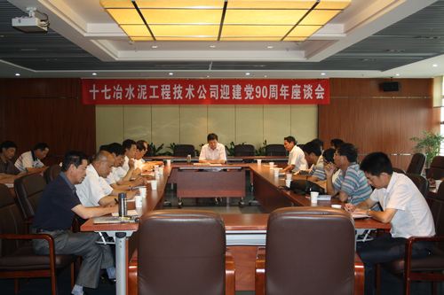 日前,水泥工程技术公司召开建党90周年座谈会,公司在马领导、各项目经理部、专业工程处党支部书记参加了会议。