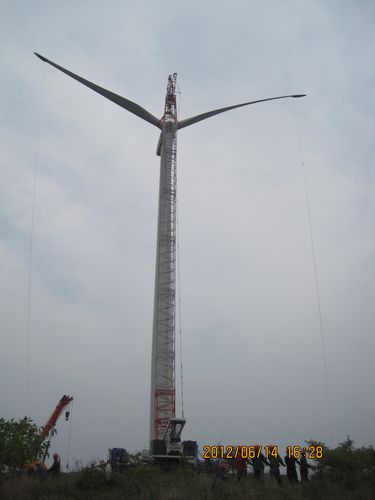 该风场由安徽龙源公司投资兴建,位于凤阳县城西南25km处, 场区内的海拔在100335米之间,占地面积约30km2。总装机33台,单机容量为1.5MW,分Ⅰ、Ⅱ两标段,我公司承担Ⅱ标段17台风机安装任务。项目经理部经过精心筹划,合理安排,克服了现场山路坡陡崎岖、设备运输、施工平台狭小等诸多困难,顺利完成首台风机安装任务。