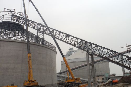 220下午,由水泥工程技术公司承建的全椒海螺二期水泥熟料生产线工程窑头斜拉链钢结构顺利吊装完成。