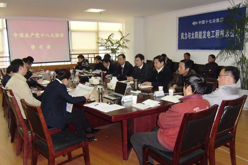 1116下午,风力与太阳能发电工程技术公司召开党委中心组(扩大)学习会,集中学习了胡锦涛同志在中国共产党第十八次全国代表大会上的报告。公司领导班子、机关各部门负责人及全体党员、工程处主任、书记和在马项目经理参加了学习。