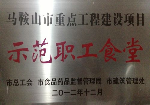日前,经市总工会、市食品药品监督管理局、市建筑管理处联合考核验收,当涂县中冶金禄置业有限公司职工食堂被授予马鞍山市重点工程建设项目“示范职工食堂”称号。