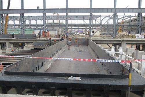 415上午,经过近两个月的紧张施工和准备,由十七冶甘肃分公司承建的酒钢2×45万吨电解铝主厂房制作安装工程一区首台电解槽槽壳顺利进入车间并组对安装。