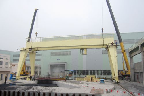 由于施工场地狭小,组合梁体积大、重量重,吊车站位困难,加上不能影响生产,给吊装工作带来了很大困难。为确保吊装顺利,项目部多次与监理单位、业主对施工方案进行评审,不断探查现场,模拟吊装,把工作做细。为减少机械台班的浪费,吊装采用130t汽车吊与200t汽车吊同时进行吊装, 25t汽车吊配合,仅用4小时,就完成2条门型支腿的安装以及缆风绳的设置和组合梁的吊装。
