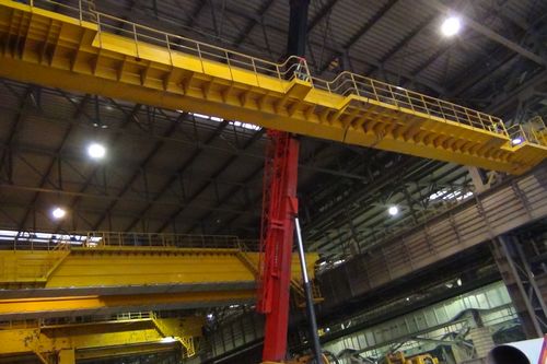 2月28日上午,中国十七冶冶金工程技术公司承建的马钢四钢轧工程连铸区域精整跨区一台起重量10t的铸造桥式起重机吊装成功。 该行车的两个自重分别为27吨和23吨的巨型大梁,在汽车吊的提升下徐徐升空,两个巨型行车主箱梁先后准确就位在轨道面标高12米、跨度为31米的行车轨道上,主梁与轨道实现精准合龙,行车吊装取得圆满成功。由于吊装现场处于厂房内,场地狭小,施展困难,加之设备总重总积过于庞大,项目部利用甲方生产间隙,将该行车分节吊装,吊装就位后组对成型,干净利落地圆满完成了吊装任务,受到甲方赞誉。