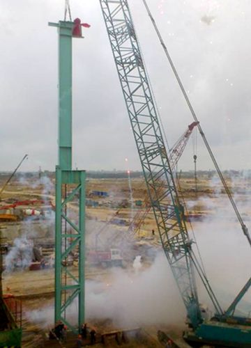 4月25日,由中国十七冶集团承建的宝钢湛江钢铁基地钢水罐维修车间A列1线及2线钢柱吊装成功,正式拉开湛江钢铁基地炼钢工程钢结构安装的序幕。 宝钢湛江炼钢基地位于广东省湛江市东海岛,钢水维修间是炼钢工程的附属部分。此次吊装的钢柱重为22t,檐口标高+31.5m。冶金工程技术公司项目部充分发扬“高效严谨、精细务实”的企业作风,精心准备,合理组织,优化资源配置,保证了钢柱平稳落位,为后续的钢结构安装开了一个好头。
