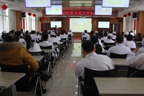 呼吸内科主任王尔东从当前人感染H7N9禽流感疫情概况、禽流感的概念、禽流感的病原学和流行病学特征、人感染H7N9禽流感的临床表现、实验室检查、胸部影像学检查、诊断与鉴别诊断、治疗方案、人感染H7N9禽流感疫情防控措施要点、当前防控的目标与病例的监测、调查报告、不明原因肺炎定义、世界卫生组织(WHO)推荐的禽流感预防措施、我院人感染H7N9禽流感诊治流程等方面作了详细讲解。