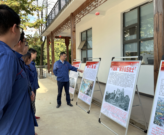 在景德镇项目,党支部组织开展“党员讲英雄故事”活动。大家在党史知识展板前围成一圈,听党员同志讲述为国牺牲的英雄故事。从湘江血战到狼牙山五壮士,从中国共产党领导的人民军队与国民党反动派军队四次大战四平,到抗美援朝战争中志愿军击退美军五次反扑的“铁血松骨峰”,项目全员在革命故事的洗礼中增强了坚守建设一线奋斗的信心决心,表示将继承革命先辈的优良传统,努力工作,全力推进项目建设,力取把景德镇项目建设成优质精品工程。