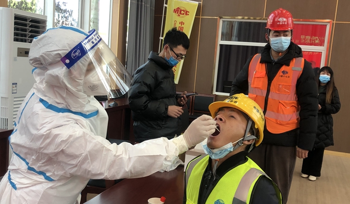1月13日,中国十七冶集团陕西分公司汉中市“两院一中心”项目在项目部设置集中核酸检测点,全力配合汉中市三二〇一医院工作,为项目部劳务人员、管理人员、监理及业主单位人员共计252人进行了核酸采样检测。