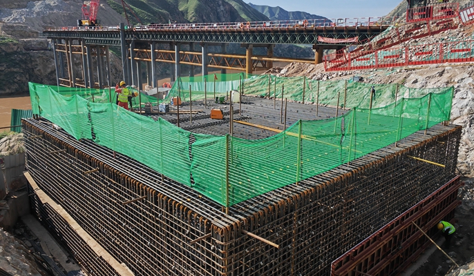 连霍高速什川黄河特大桥首个承台钢筋施工完成
