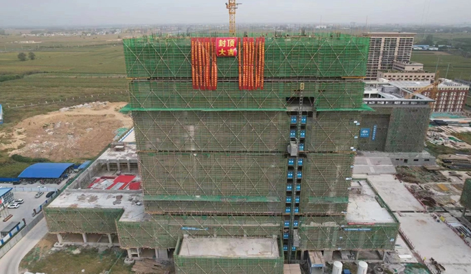 灵璧县技工学校项目位于灵璧县县城西边,总用地面积约192.2235亩,总建筑面积约148500平方米,其中地上建筑面积136500平方米。工程主要建设内容包括培训中心、竞技中心、图书馆综合楼、综合服务中心各1栋,宿舍楼4栋,配电室、门卫等。此次封顶的培训中心用地面积3964.12平米,总建筑面积42361.89平米,地下一层,地上16层,是该项目第一栋封顶的高层。建成后将成为灵璧县县城西大门的重要门户,成为灵璧县县城的高质量发展的一张崭新名片。