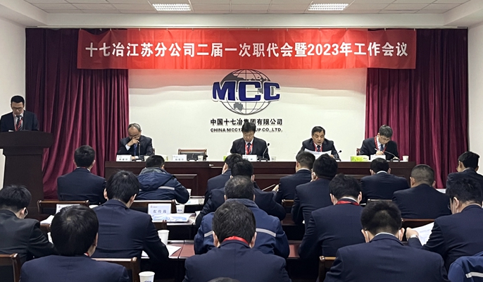 1月13日上午,中国十七冶集团江苏分公司召开二届一次职工代表大会暨2023年工作会议,公司领导班子成员、副三总师、职工代表、非职工代表的项目部领导班子参加会议。