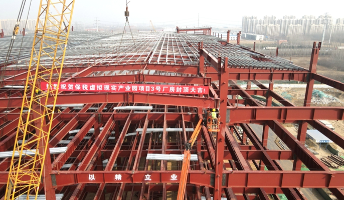 潍坊保税虚拟现实产业园二期厂房封顶